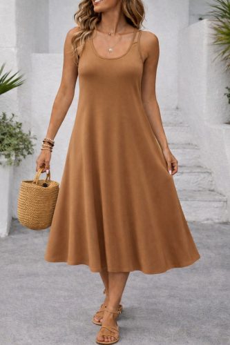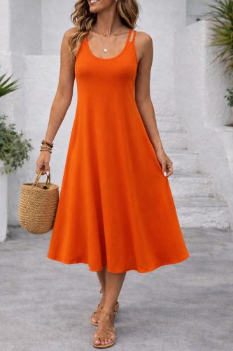 Kadın askılı yuvarlak yakalı kiloş uzun viskon elbise
