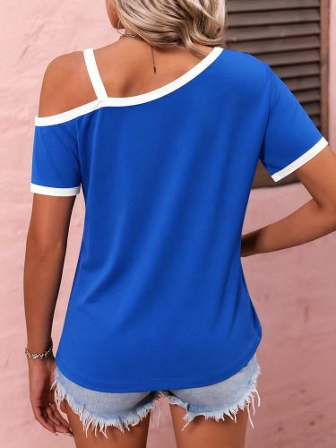 • Kadın kısa kollu tek omuzu açık askı toka detaylı viskon bluz